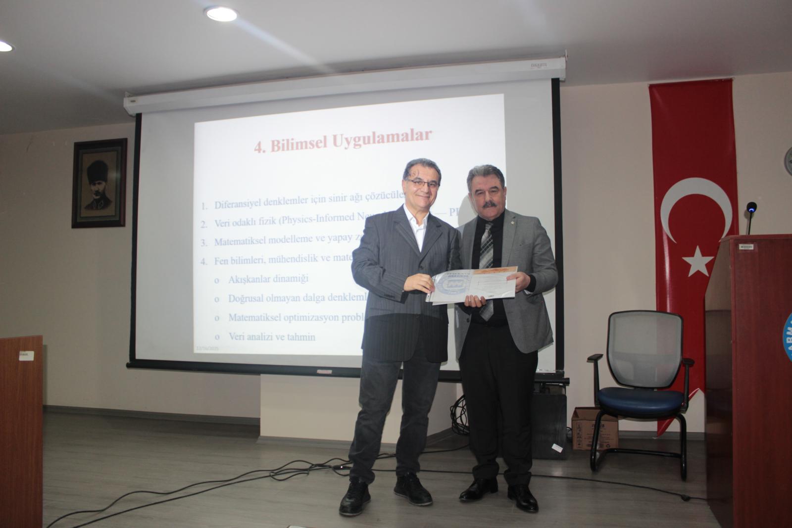 Bilim, Sanayi ve Teknoloji Günleri 2025 kapsamında Fen Fakültesinde gerçekleştirilen etkinlikte, Prof. Dr. Selda Çalkavur ve Prof. Dr. Doğan Kaya alanlarına ilişkin sunumlarıyla katılımcılarla buluştu. Prof. Dr. Selda Çalkavur, kriptoloji, şifreleme sistemleri, elektronik imza ve kuantum bilgisayarlar başlıkları çerçevesinde güncel gelişmeleri ele alırken; Prof. Dr. Doğan Kaya ise matematiksel düşünme ile yapay zekânın birbirini nasıl tamamladığı konusunu kapsamlı bir bakış açısıyla değerlendirdi.