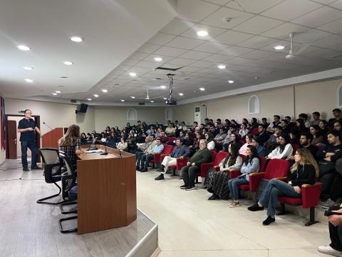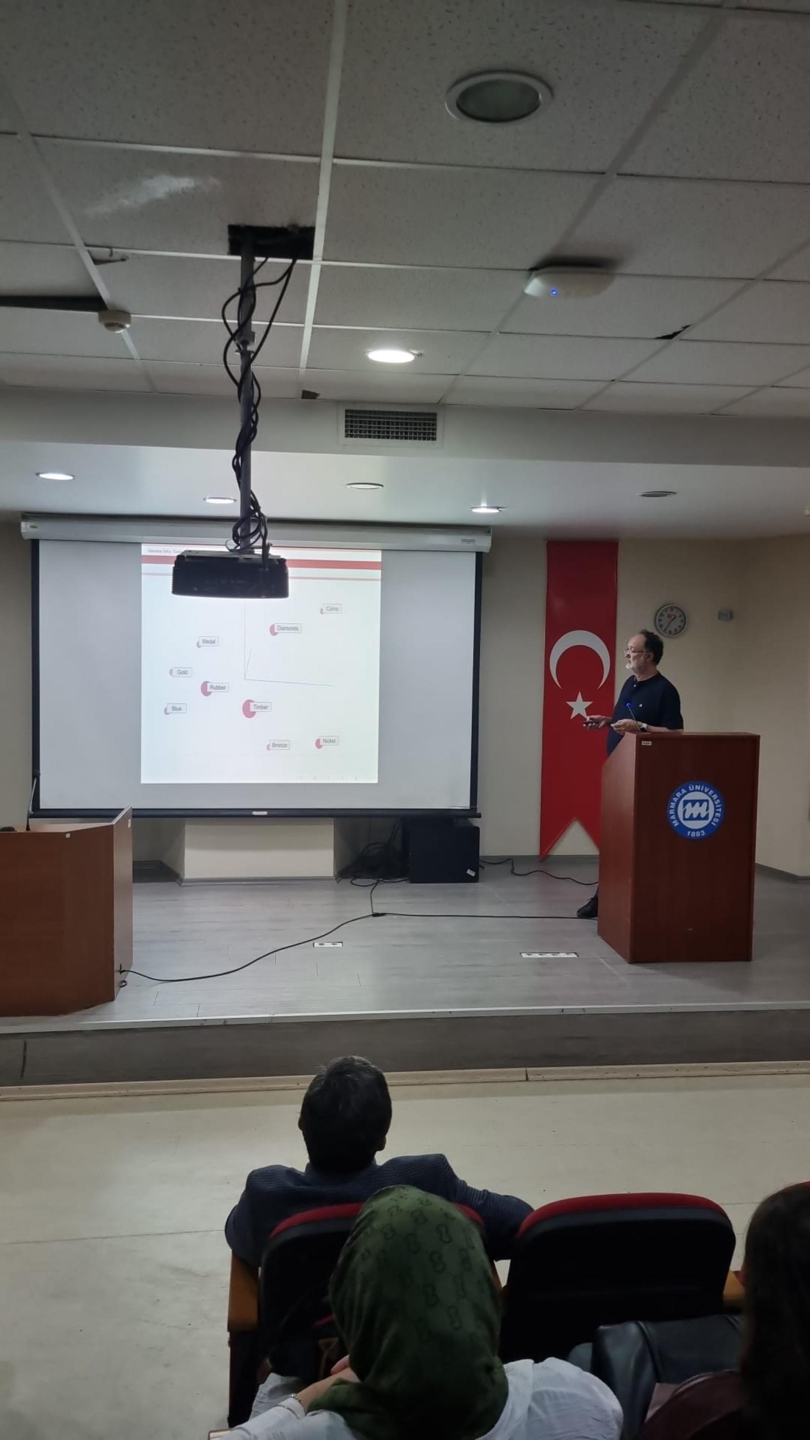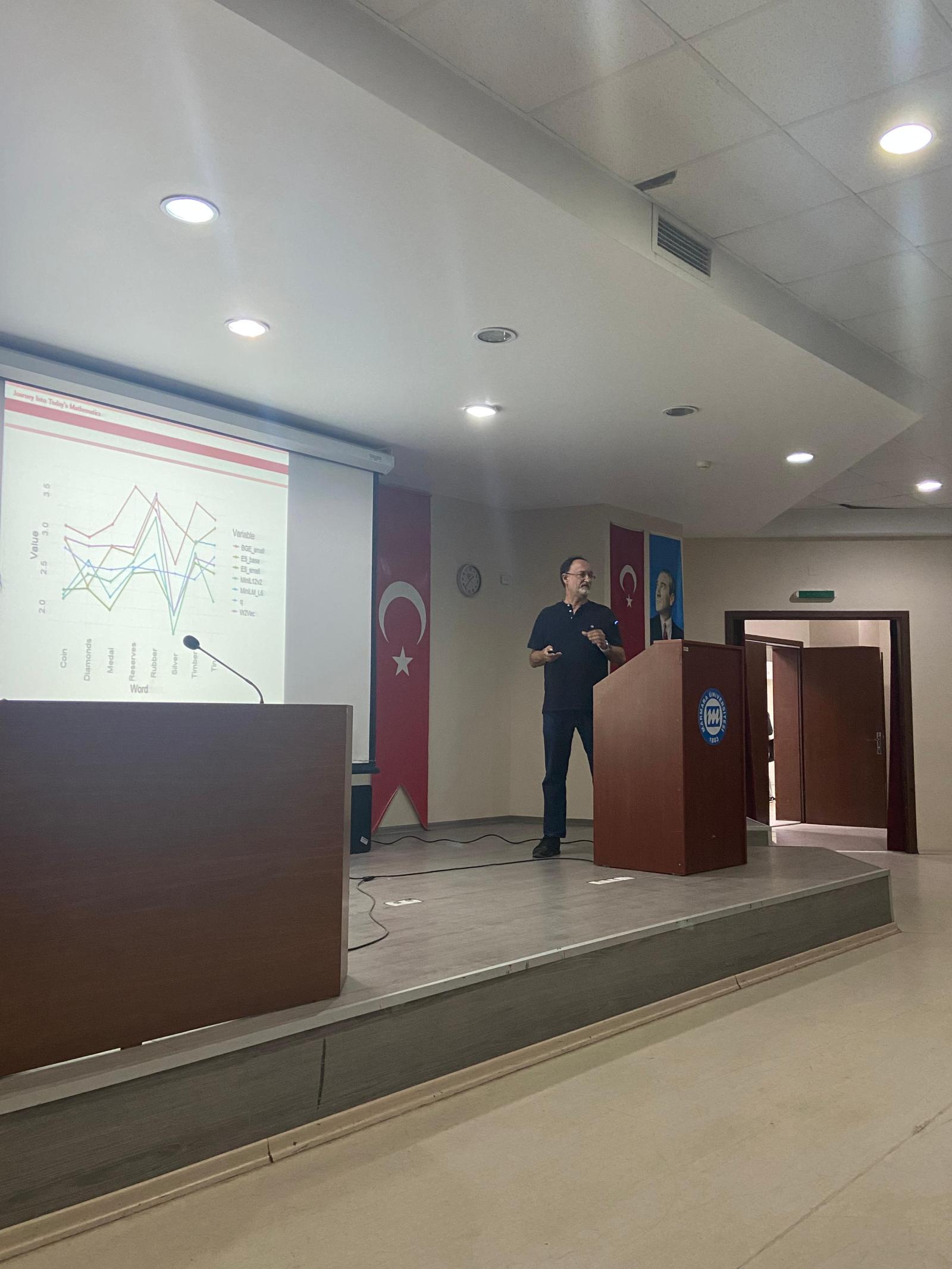Sunum, özellikle lisans öğrencilerimizin matematiğe bakış açılarını genişletmeyi hedefleyerek, soyut matematiksel kavramların günlük hayattaki uygulamalarına dair ilham verici bir bakış sundu. Konuşma sonrasında öğrencilerimiz ve öğretim üyelerimizle verimli bir soru-cevap bölümü gerçekleştirildi.